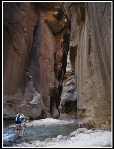 The pic above is in the Virgin river Narrows, the most famous slot canyon on earth. We’ll be journeying down a remote side canyon, dropping (on a rope) into the middle of the most sustained part of the Narrows. It should be good.