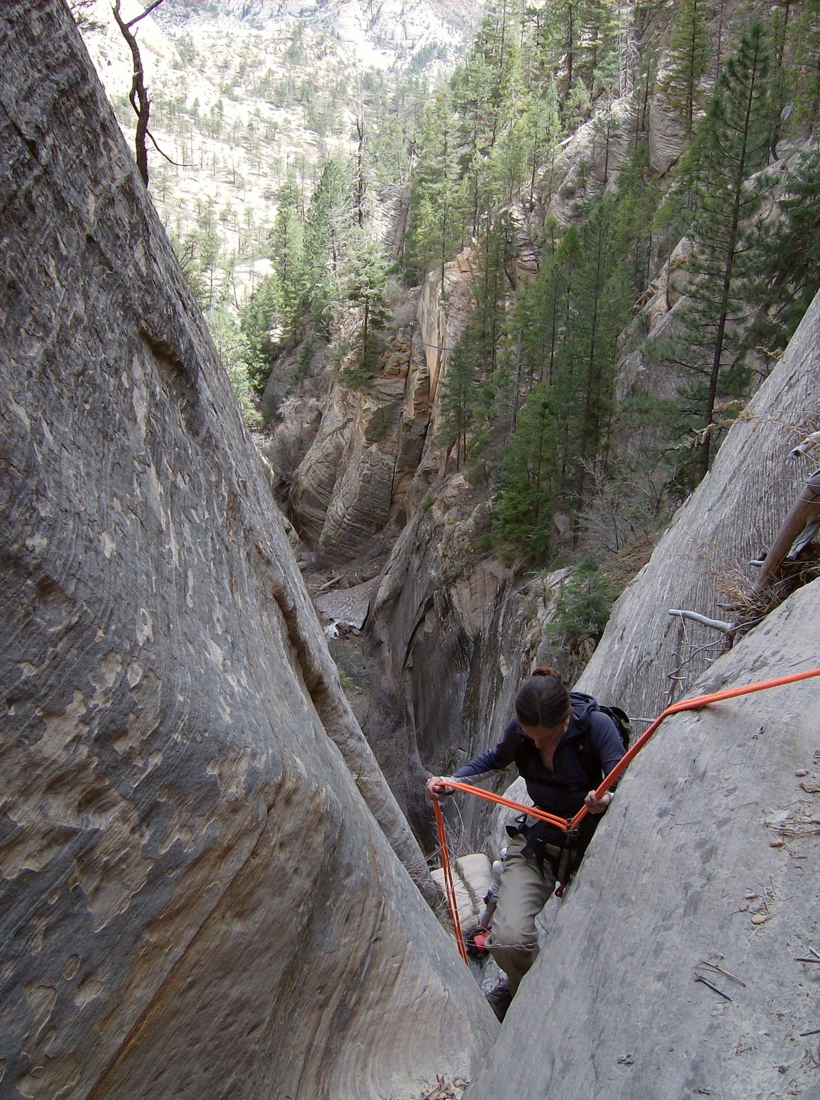M handlining off a tree. Note the flora; Zion has a fantastic mix of desert and alpine, you get p pines, cacti, and manzanita in the same 50 feet.