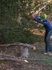 Once back, rest was not to be had. Gotta have a fire on the longest day, and that means using proper safety techniques and footwear with the pulaski.