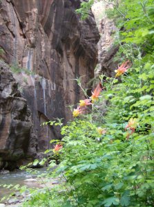 We decided to hike the Narrows, rather the repeat a canyon we’d done before, which meant securing a permit and a space on a shuttle van. Only space on the shuttle van is for the 0930, not recommended for day hikers. “Oh, we’re intimately familiar with hiking the Narrows in the dark.”