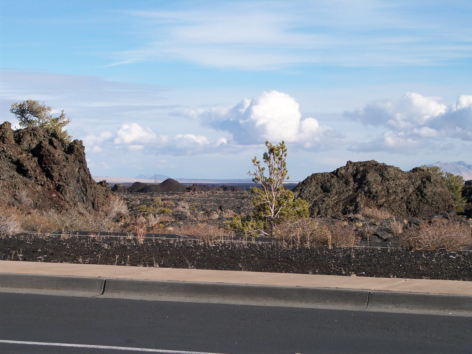 We saw Craters of the Moon National Monument on the way, and returned a week later on the way south. By then it was covered in snow and fogged and cold, and I enjoyed a fantastic dayhiking loop through the lava (that M wanted no part in). Amazing: <100 foot visibility, shifting fog banks, 15 mph winds, working hard to go 1/2 mile an hour, 70 ft lava tower mazes appearing out of nowhere. Sublime.