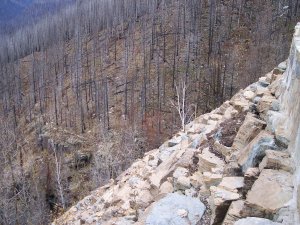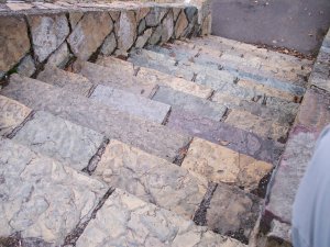 These are the stairs to the closed visitor center. We’re eating lunch right by the door, trying to hide from the wind. Why do we have no pictures of the fantastically delicate rime ice on the trees for the mile below here? No idea.