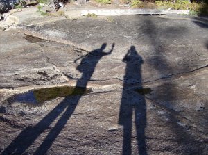 After this the clock set in. M had eaten a granola bar and bit of bread all day, and while it’s her custom to go long periods with minimal food and water (that would kill a normal person), this time it bit her. She bonked, her average speed dropped to 3/4-1/2 mph, and she puked a few times. I eventually regained my patience, took her pack, and guided her through the last maze of steep trail and boulders to a “real” trail and level ground in the valley.