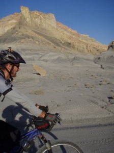 Washed out cattleguard in Collet Canyon, proving that it was at one time a serious road and not a mere “route” down the wash. I thought out launching off the 1′ drop on the far side, but let me lameness get the better of me.