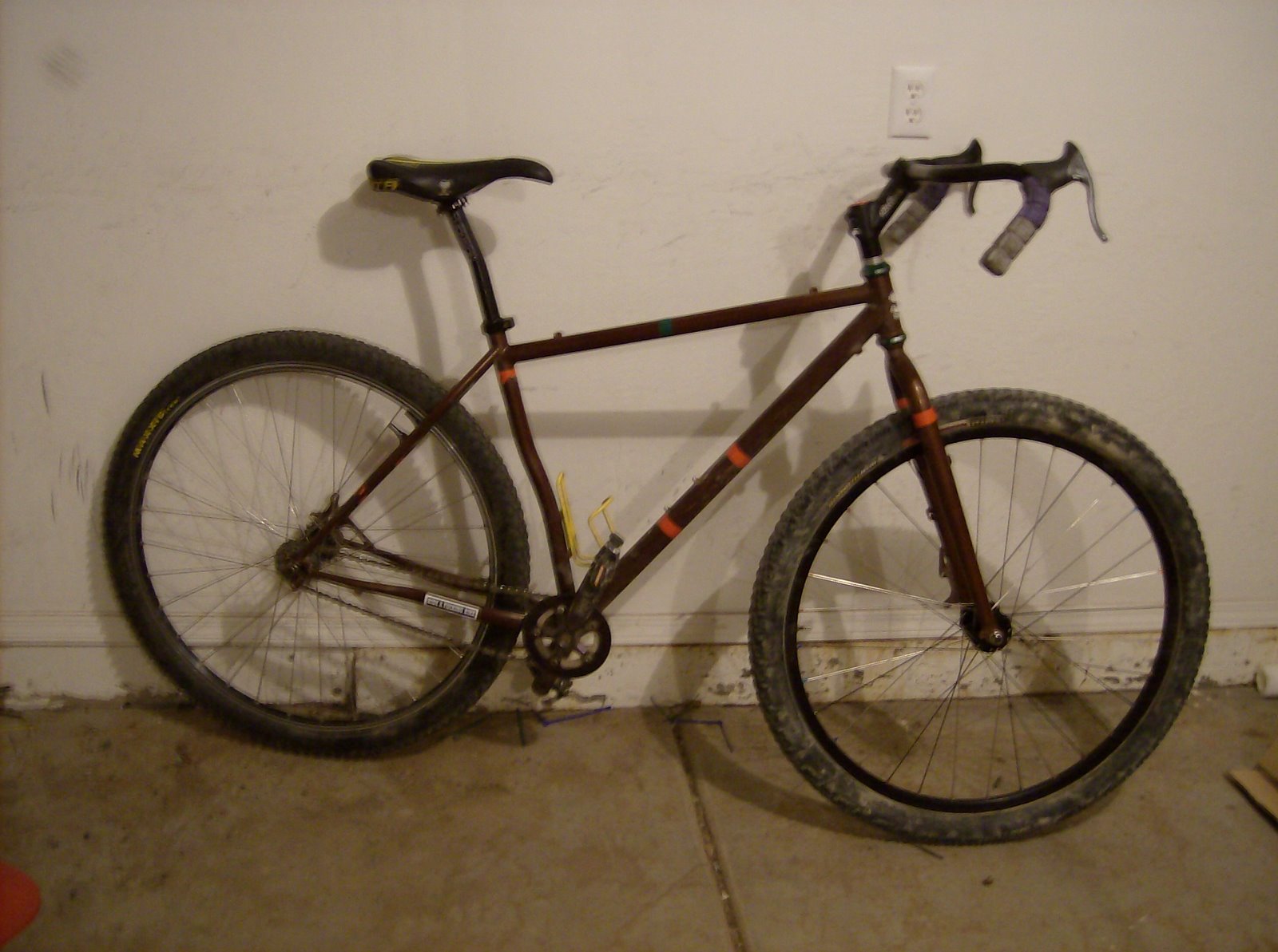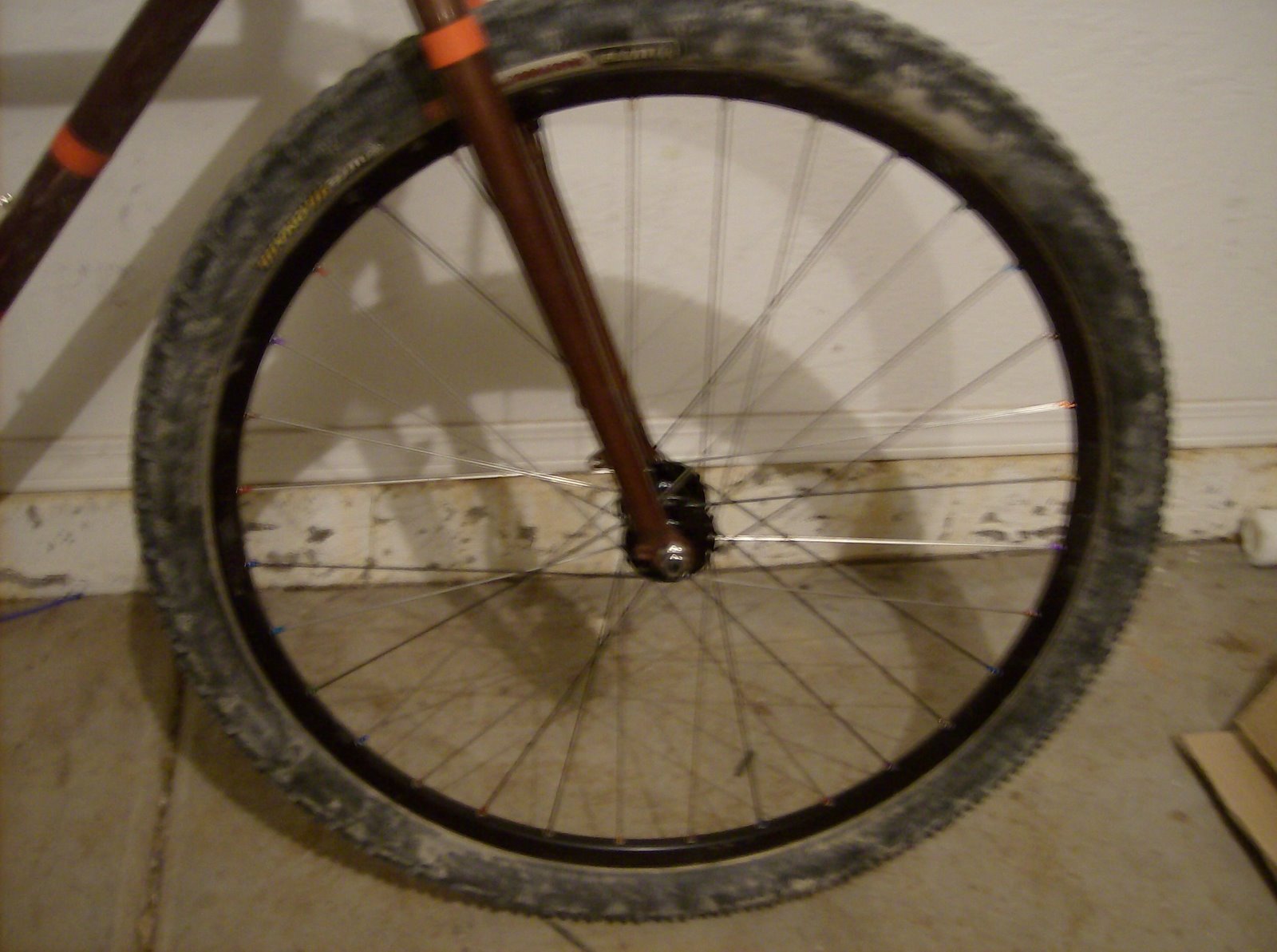 Mustang OSB, black and silver Comps 32 3x, Surly bolt-on, and the full rainbow of nipples.