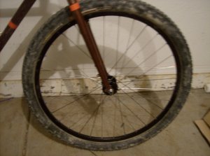 Flat bars and rim brakes suck, so old bars and levers, and a new front wheel was needed. Whoyagunnacall?