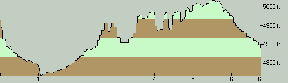 Eventually, the novelty will wear off and you’ll stop being deluged with Topofusion files. I’m having fun being a geek for the moment: 11.1 moving average (on the SS!), a mighty 516 feet of climbing. 37 minutes moving, 1:03 stopped (hopping fences).