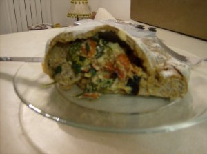 Whole wheat calzone. Stuffed with: fresh roasted red bell pepper, roasted garlic, spinach, broccoli, ricotta, marinara, turkey italian sausage, romano. Crust wasn’t my best, but the filling is by far the best I’ve ever made.