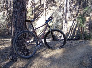 The bike is in great shape too. Reba like firm butter, H-bars great for climbing and descending, and the new Dry X front tire confidence inspiring and fast as hell. Nano fast, Ignitor cornering, tougher than either and bigger than both. Me like.