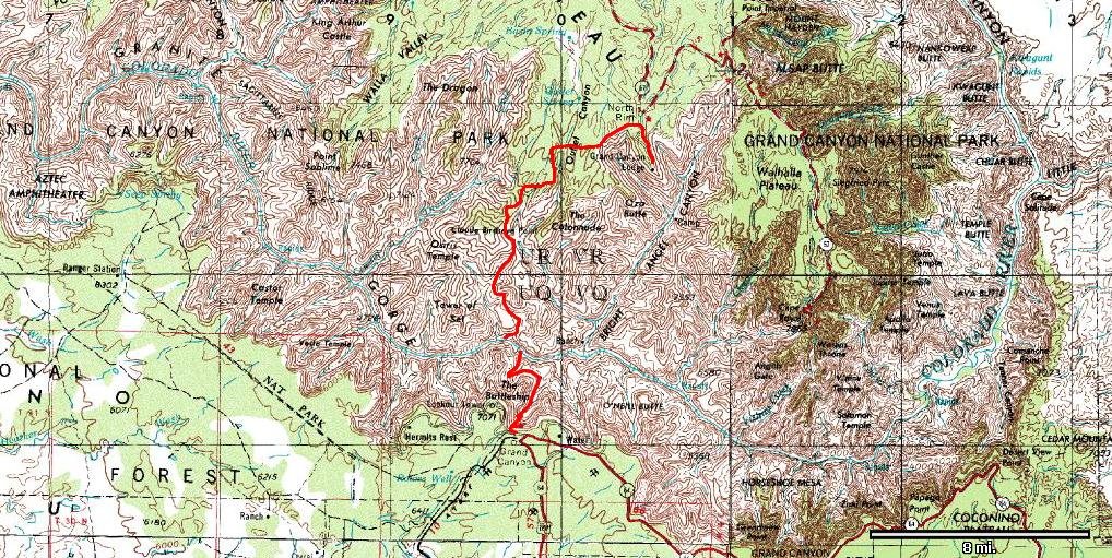Descend the Bright Angel to the Tonto, head west, descend Horn Creek, cross the river (in a pool toy?), ascend 91 mile Canyon, then on around Shiva Temple to the rim. Across to the lodge, resupply, then a normal return along the Kaibab. Butchart said to allow two days for the first leg to the north rim, so it should be doable in one day with an alpine start putting one at Horn around dawn. Ass kicking, but doable. Perhaps later ?? if snow allows.
