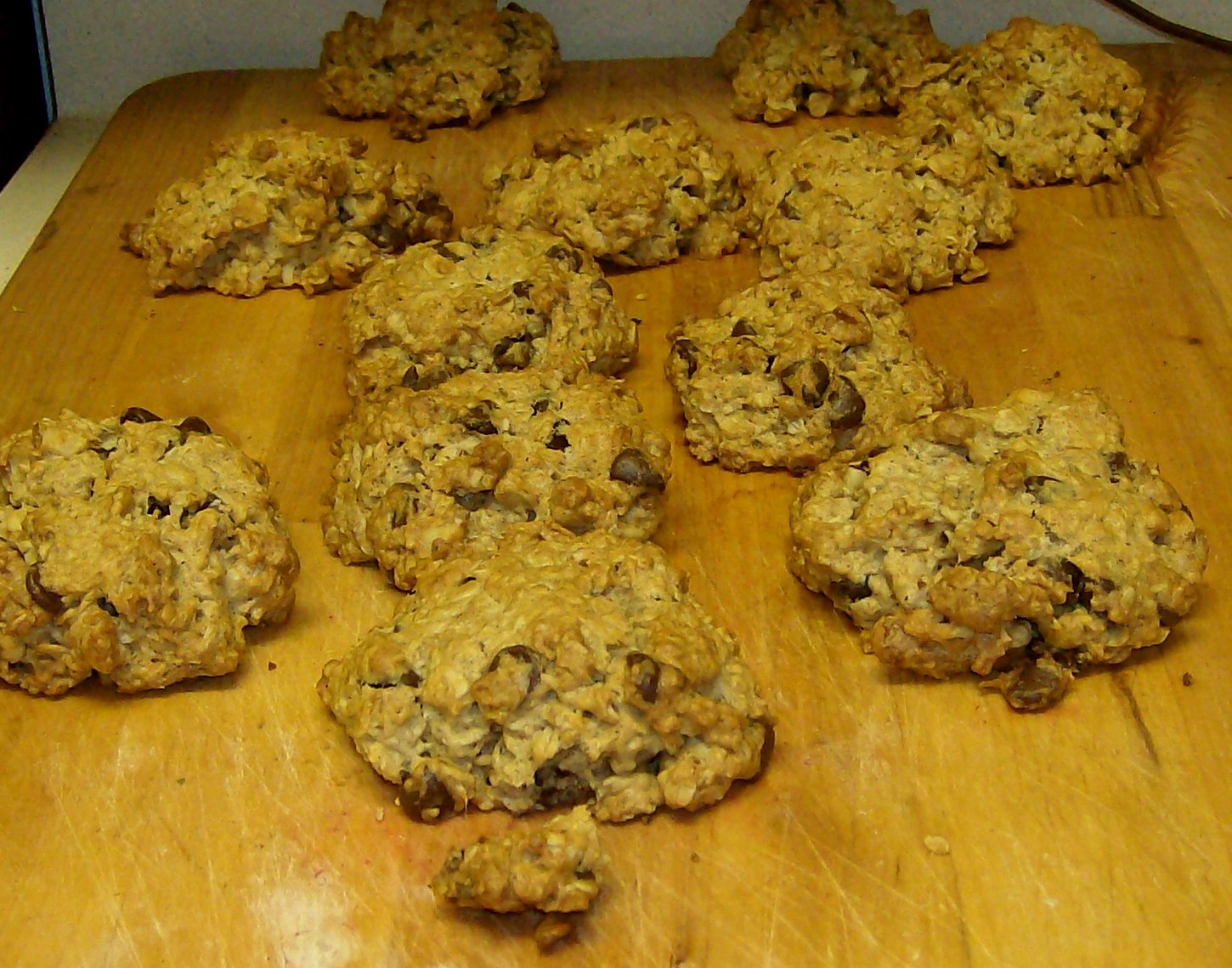 I am the baking inept. Me and “recipes” don’t get along on most days.For this I followed the classic oatmeal recipe in The Joy of Cooking, subbing walnuts and chocolate chips for raisins. (Yeah, this is Dave. Yeah, I’m to effin’ lazy to copy, relogin, and post. Deal.)