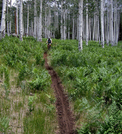 Soon enough we got off the two-track and onto a motorcycle trail. Normally this would mean horrid, fall line climbs. But yesterday, with all the monsoon rain, traction lasted longer than leg power.