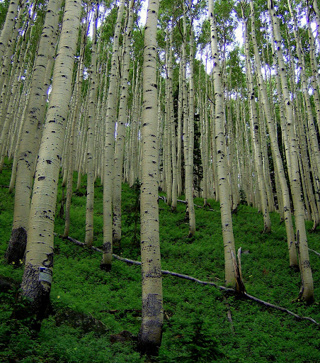 Aspens and the tunnel on the waterline road. Closed to civilian motors, it’s cherry-stemed into the wilderness to provide the city water from springs.
