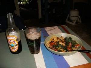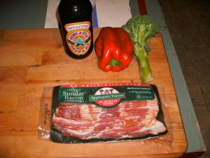 Bacon, garlic, scallions, red bell pepper, the last of the garden spinach. Pasta. Newcastle. I’m living high on the hog.Newcastle! Nice! Politics out – mountain biking in! Government out, mountain biking in! For “those who seek,” mountain biking in! See you either at the Vision Quest or this Sunday for a ride over the Hill. Amigo……..