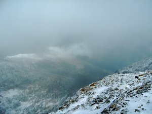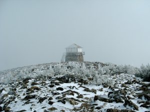 So I drove into the Bitterroot and hiked up St. Mary’s Peak, a softball with a trailhead at 7k rather than the usual 3.5. There was some snow up on the top (9.4k), and very cool rime. There’s actually a little trap door you can use to get inside the lookout. A good place for a ski camping trip, methinks.