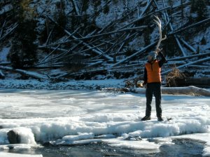 Phillip, the “little trench” sustains itself right over a hundred foot waterfall, approximately two feet farther around the bend… and then opens into a big flat valley. Also, the photo was taken from a major road, Dave says, if you’ve been to Yellowstone, you’re probably seen it. But everything looks more fun in the snow :)