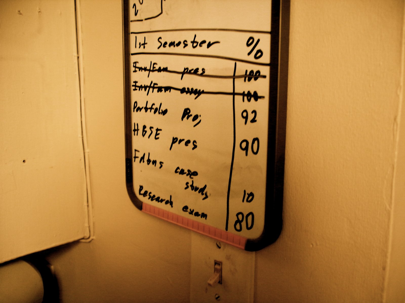 God, I wish I had this much done. Want to see my list?Critical analysis 95%HBSE paper #3 30%HBSE presentation 10%Case study 10%Portfolio project 0%Research exam – oh that’s right, I don’t have to take it! In your face!Oh, I hate life.