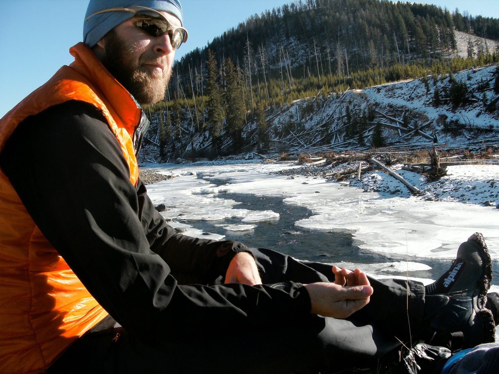 I picked these pants off the sale rack in Flagstaff last year, and hardly wore them until this fall. Since the Yellowstone trip with Chris in September, I’ve worn them all the time. The fit is trim, just enough room for long underwear and ski boots (not plastics), and after I removed the side seam-pockets the fit has been perfect. The highlight is the fabric, some sort of hard face poly knit with mechanical stretch (ie no hydrophilic lycra or spandex content). It is very wind resistant, very breathable, warm enough, and dries really fast (as I found out in September). Thus far they’re the ideal Montana pant. Too bad I can’t find anymore in back stock.