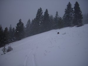 Skiing in the Rattlesnake is coming into shape nicely. This is on the Grant Creek divide, about 400 meters north of the powerlines, this morning.