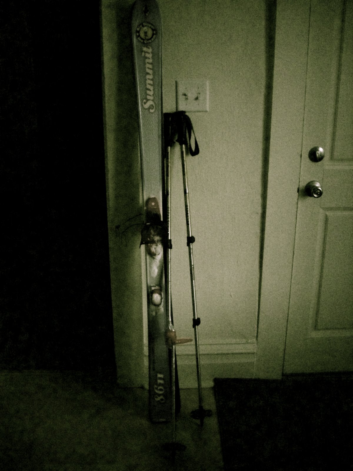 It rained up to around 5500′ a few days ago, and it was easy to tell today. Windpack and a bit of powder over crust up high, ice and death cookies towards the bottom. Powder makes me a better skier than I am (see last post). Funky but generally softish I can handle okay. Ice and dc’s prey upon the weaknesses of my setup mercilessly, wanting to twist the leather boots around, snag an inside edge, and yard sale me upon the slope. I mostly avoided that by doing a lot of side slipping.