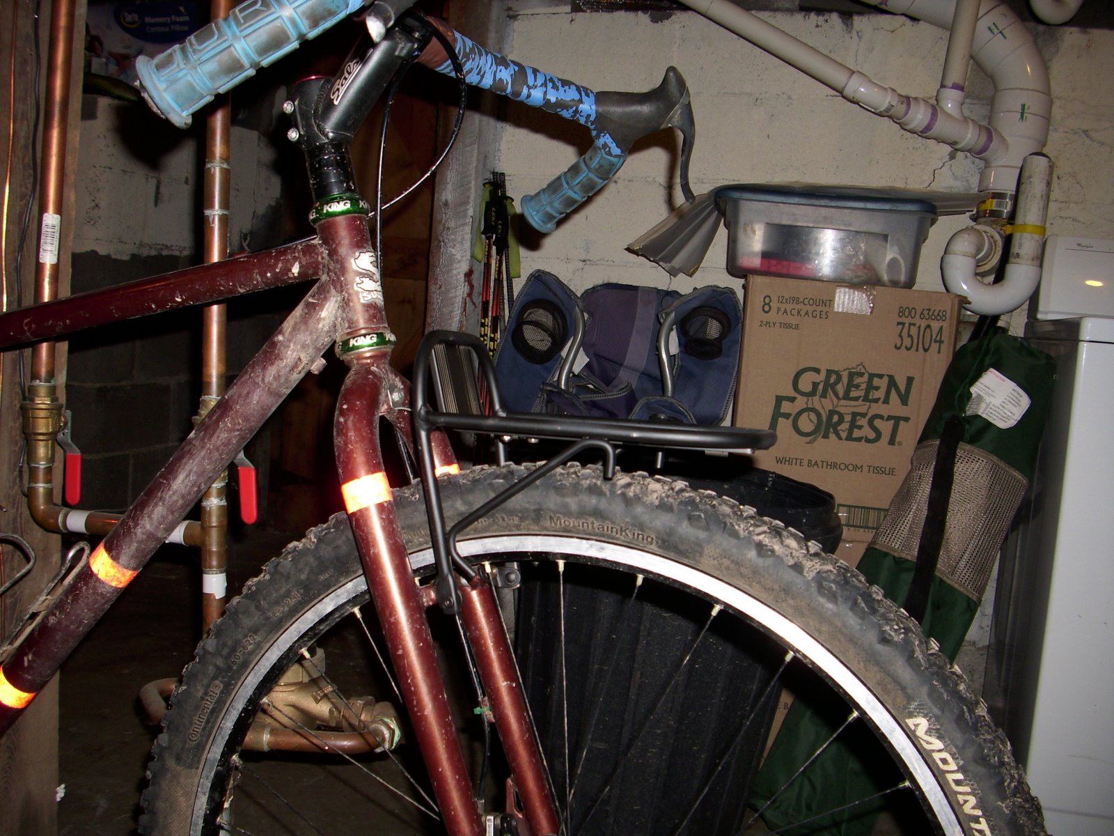 Nashbar front rack. A very cool design. Cheap welding and an advertised limit of 15 lbs are a question, but for 7 bucks we’ll see how it works out for summer jaunts.