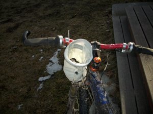 I was going to ask about the bar bag but I see it’s a feed bag…I like.how’s the front rack working out?AZSF is rock’n wish you could make it..Cheers