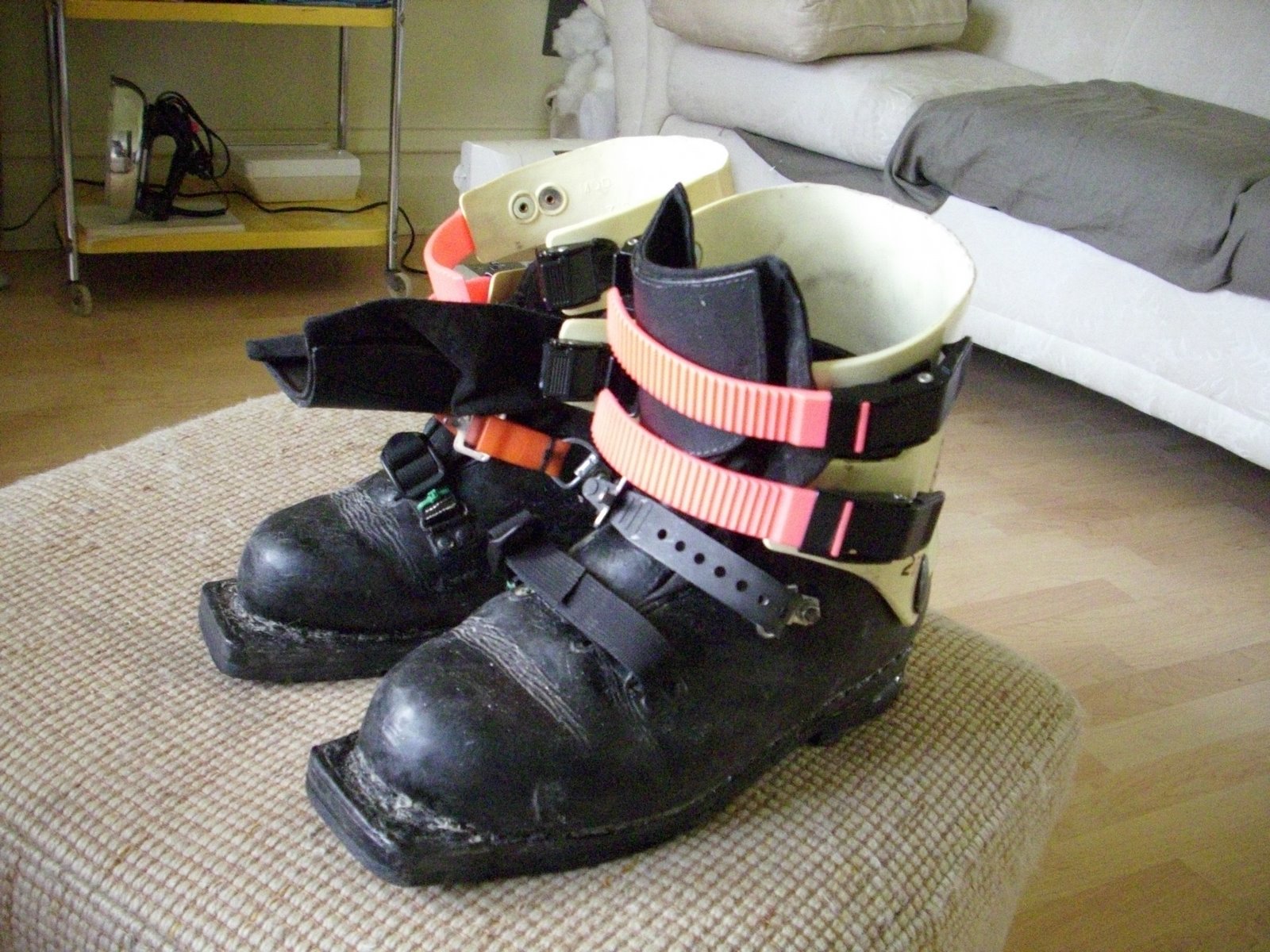First, remove the ratcheting straps over the instep by dremeling out the rivets, and replacing them with bolts and some hardware from ACE.
