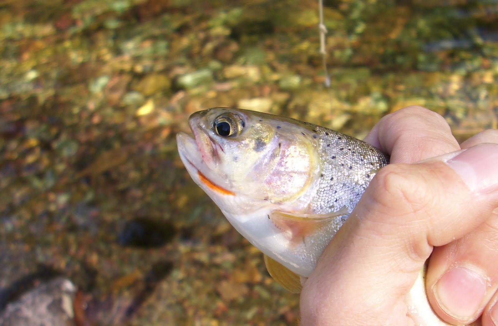 Getting on past five, I worked my way through a big snarl of old deadfall and driftwood, got upstream from it, and sent a short cast down below the riffle into a big hole. I immediately got a strike, but failed to set the hook. I set it on the next cast, and landed the aforementioned fishes twin brother. A few more casts, and something big happened.