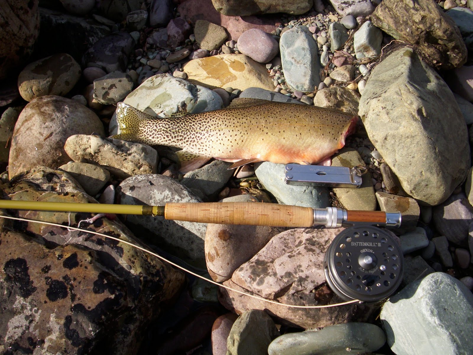All the previous fish had been very stealth, no splashing or theatrics. This guy made his presence felt with a huge jump, and the fight was on. I had to take some time and wear him down before bringing him to shore, and getting things ready for dinner.