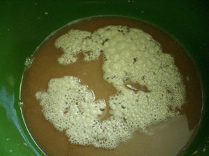 -Take a bowl, add plenty of yeast, sugar, cold stout from an almost week old growler, and boiling water. 2:1 stout:water ratio. Stir water in a bit at a time so it doesn’t kill the yeast, yet is still hot enough to activate it. If it looks not like this within five minutes, you screwed it up: