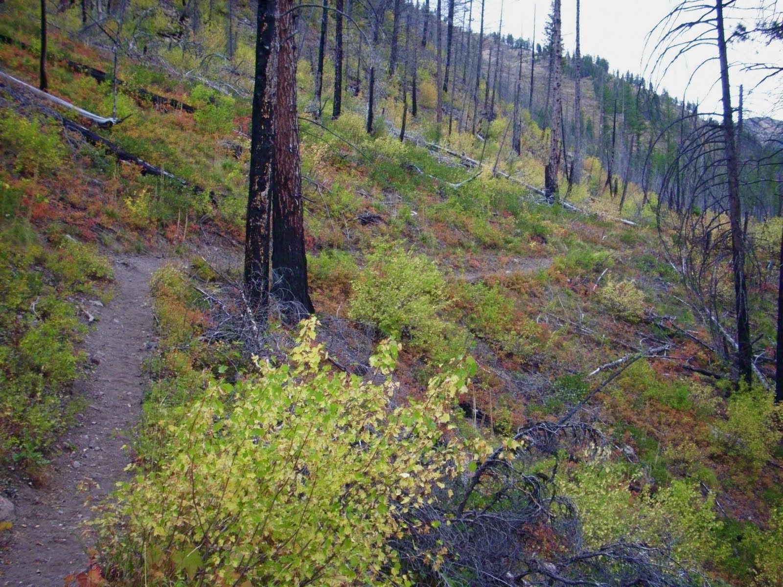 The rest of the hike out was very nice, too. The late start and long trail up to the pass (Many trail signs in Western Montana have become very inaccurate, bench-cut retrofitting has added miles, while old signs and map remain.) had me behind schedule, and I elected to not push things to make a committee hearing in Helena in person.