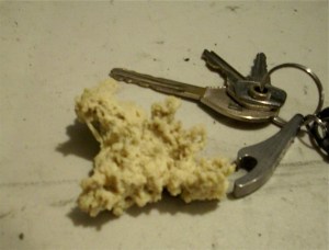 A few months ago I heard a strange noise when I turned the rear wheel. At first I thought it was a bearing seal dragging, but eventually realized it was an alien booger in the tire. Turns out I was correct.