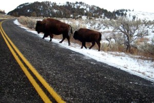 We ran into some bison on the way back through the Lamar, and got to hang out in the truck for a while watching the old guys be surly, and the young ones chase each other through the sage.
