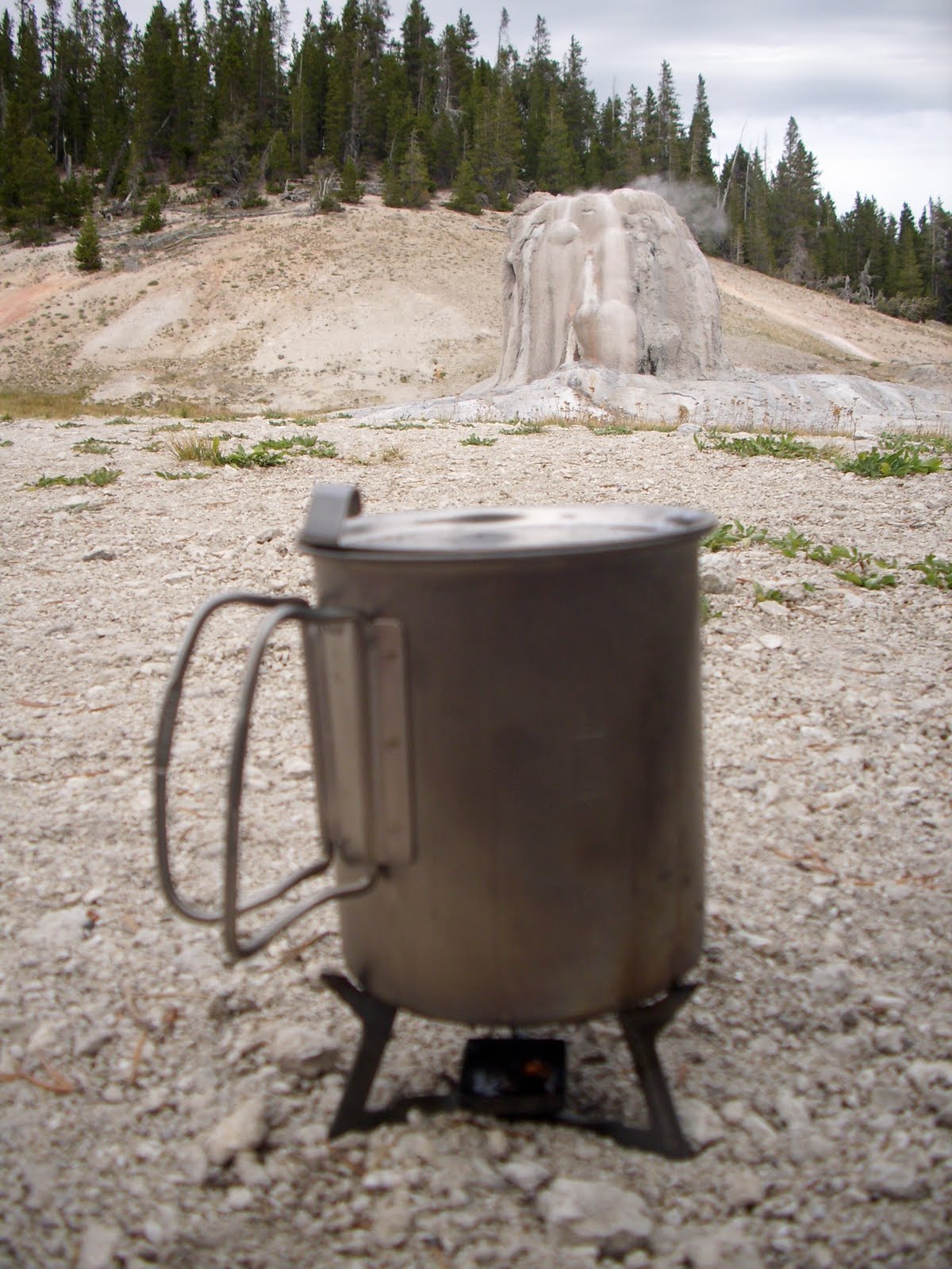 The mug/pot shape isn’t ideal for a low-powered stove like this, unless you fill it less than halfway. The shape is ideal for cooking on a fire, just build up coals and stuff it in along the side. Light, but also quite durable, and the lid design is quite clever. Nice handles, too.