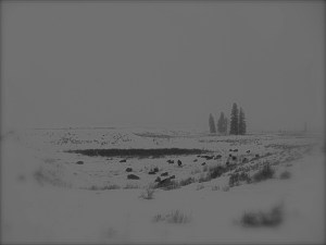 I do not envy the bison. Our snowcoach driver/guide last month said that May-November bison live on all-you-can-eat cereal. Right now, they’re eating the box.