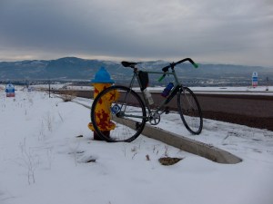 The thing is, Mansion Heights does in fact have a pretty righteous view. Which was relevant to me, beyond the outstanding views of Snowbowl and Stuart Peak, in that I had to go back down on my stupidass freewheeless bike. Spinning like mad at 20+ mph is something at which I need practice. I also need higher bars for more comfortable braking (the same thing that, the other year, caused Matt Chester to display that bent brake lever that be presented with priceless words I cannot recall). So, back to ebay for another 1″ quill stem.