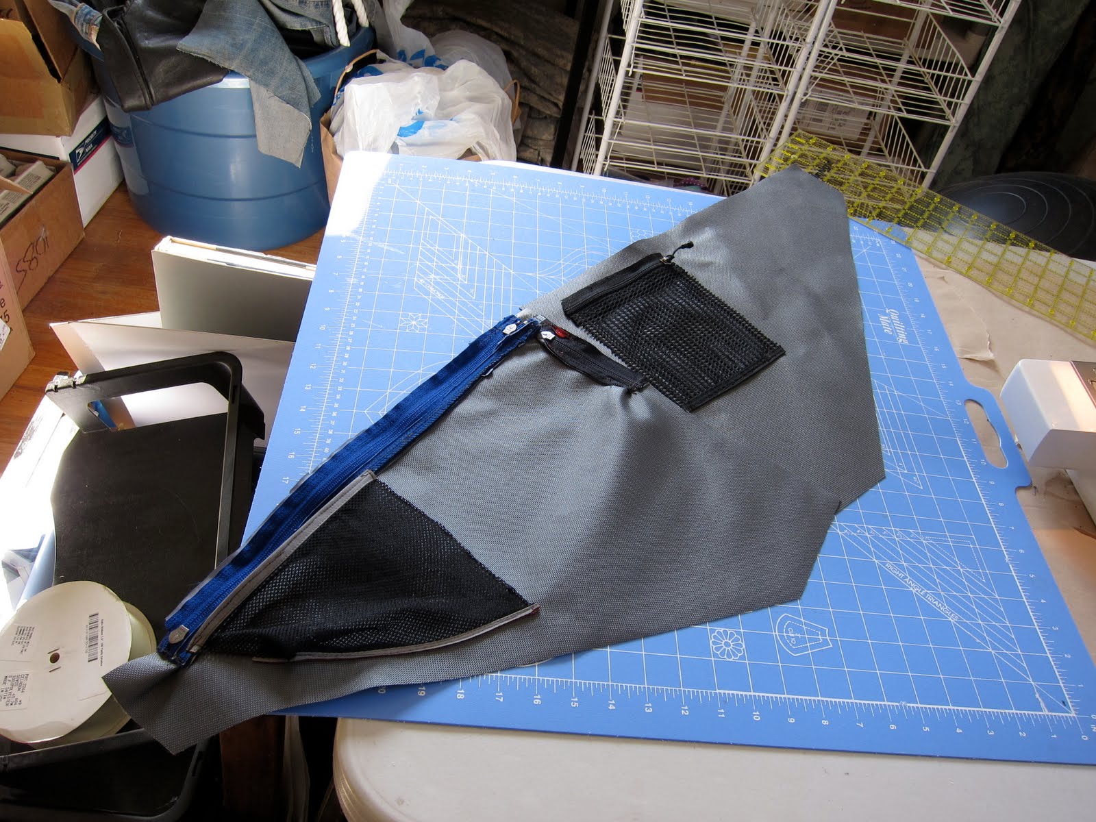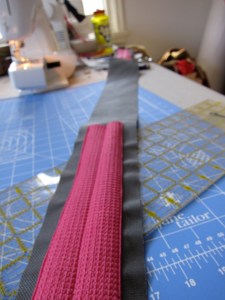 I’m psyched, it should be super useful. As you can see, the last seam on the stretch center divider was a bitch to get to, and I didn’t make it straight, and didn’t care enough to take it out and fix it. I thought about making it a zippered one, but I’ll never not use it and I always try to use as few zippers as possible. Not pretty, but strong and functional.