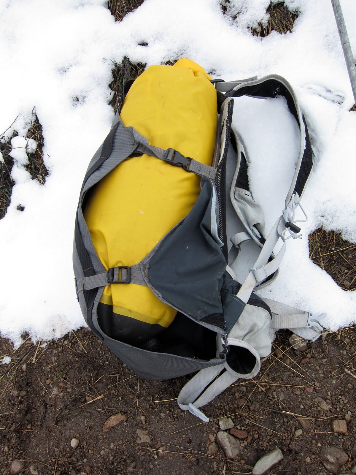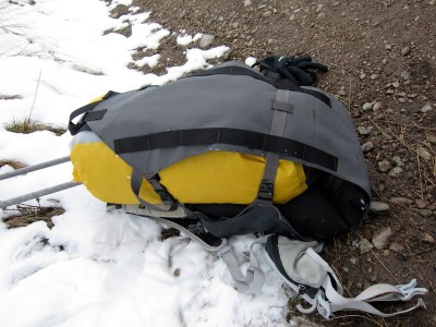 I really think that eight is quite reasonable. But believe it or not, seven wasn’t enough. I needed a small pack that could carry skis, and a pack bigger than the 22 that would provide bottle access on the go (the abundance of water in Montana makes hydro bladders kinda silly for summer hiking). I also wanted to try out the dry bag harness style, and see if it would provide extra benefits (like easily carrying ski boots.