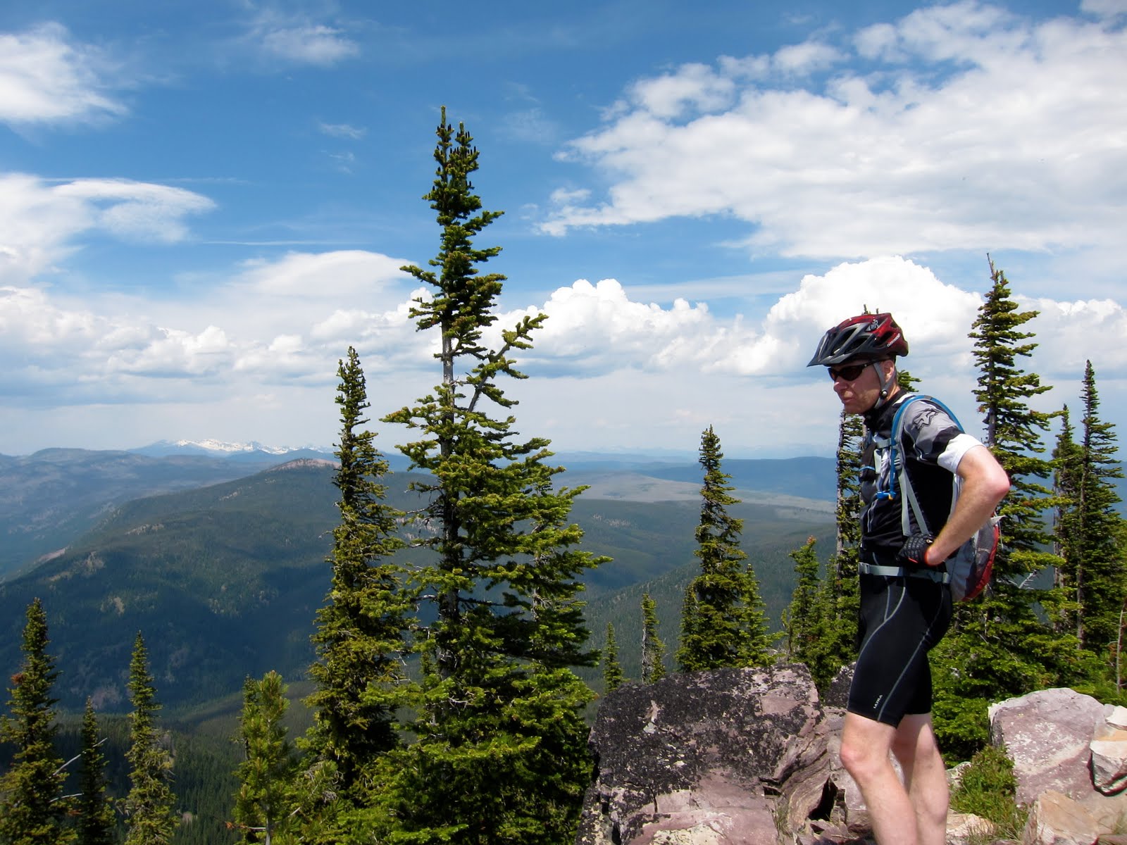 So I am today continuing the public service that is a tertiary function of this hear website by encouraging all of you local lurkers to not bother riding the Sheep Mountain loop this year. Because let us face it, that ride sucks bald dog. All the folks we saw out there today riding up to Blue Point (or the false summit of Sheep) and back where definitly doing the smart thing. Descending that bit of rocky singletrack, then climbing up to the true summit of Sheep, and especially the descent down the east fork are just not worth your time. Witness Bill’s malaise: