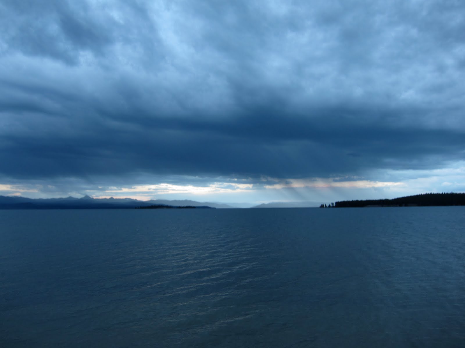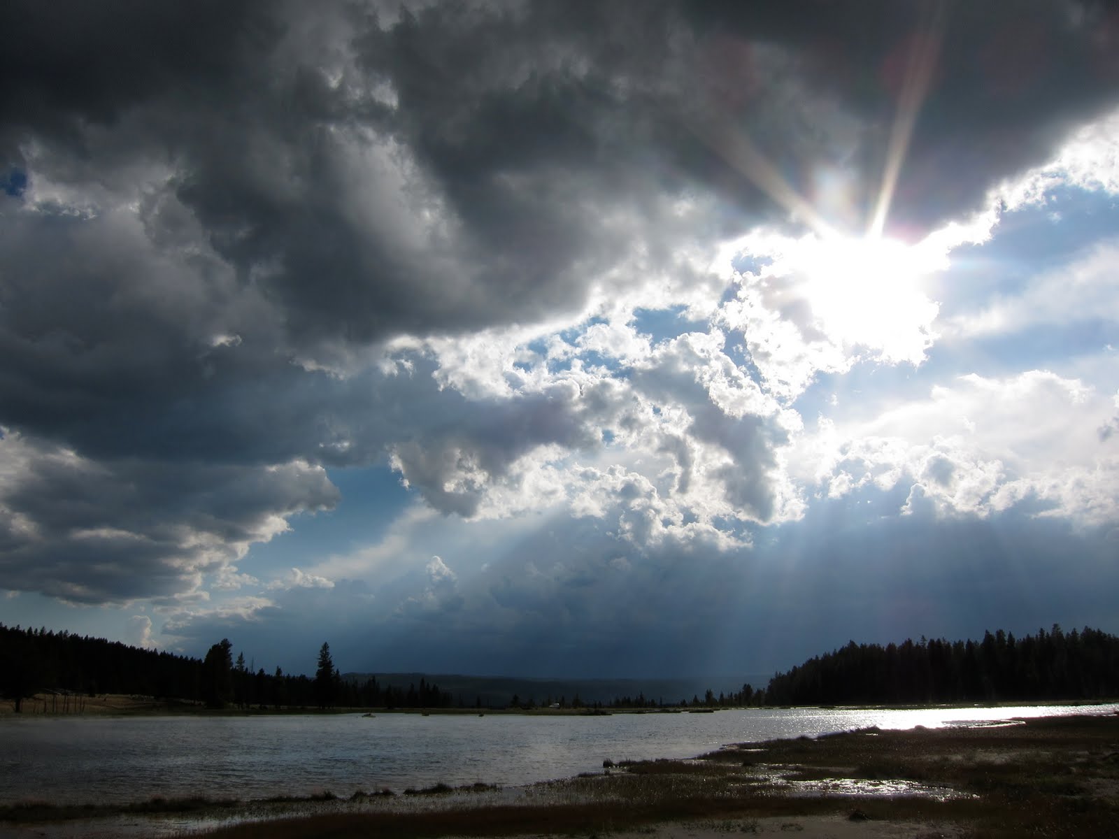 The exceptionally varied summer thunderstorms this weekend did make life with a camera especially captivating. Very soon after I took this last one the clouds rolled in, rain started, and night fell an hour early. Sudden darkness, glare on the windshield, and a Hayden Valley full of tourist cars and bison were not a good combination. At one point two ornery bulls ran right behind our truck, presumably only hitting it. I say presumably because I never saw them, though I could here their snorts of vehicular dissatisfaction clearly, before M told me to go forward, now.