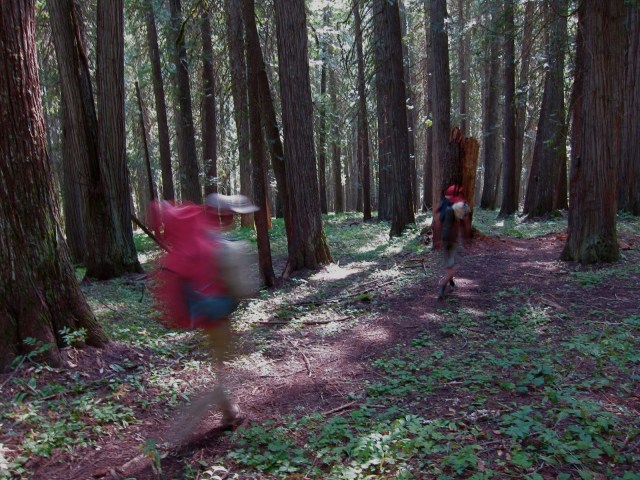 Our feet got tired walking so much hardpacked downhill trail, and we all three spent time talking about what a great mountain bike trail it would be. Yet it’s a fantastic hike, with a good trail and nice creek nearby, but the main thing it has to recommend it are the old growth Cedar groves.