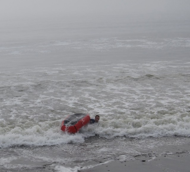 The other surf flip, not caught on video. I don’t remember the exact circumstances, but presume they were very similar. I like the 2010 removeable spray deck quite a bit. So long as one is careful to keep the zippers clean it seems like it should last a long time, and thus you can select the benefits of a decked or open boat at will.