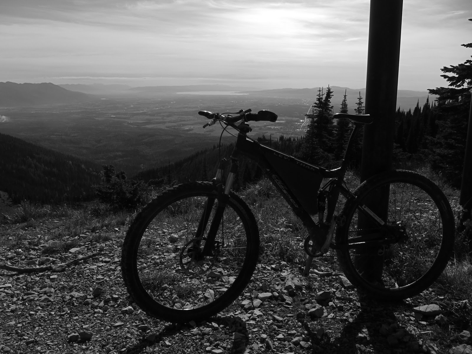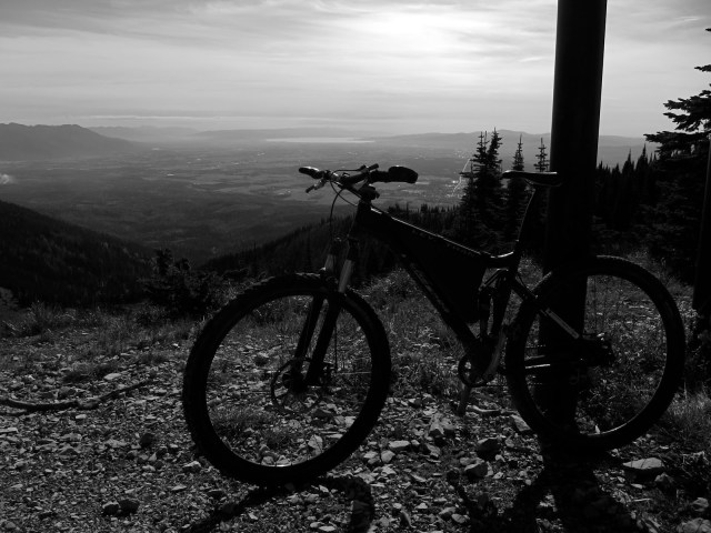 Yesterday I drove up to Big Mountain, to investigate the ski area bike trails before snow flies. The main bike trail up is like Beargrass Highway at Snobowl, but gentler, better groomed, and 2.5 times longer. It’s a brilliant singletrack climb (and not a bad descent). Some of the steeper, more technical side trails add variety.