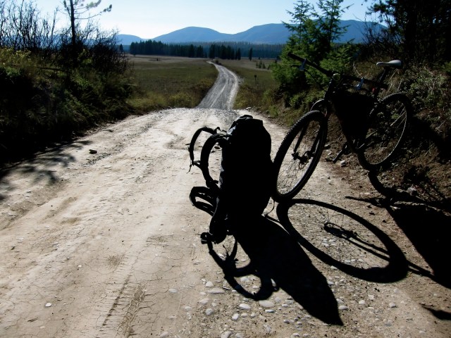 I brought the Karate Monkey, North Fork pack, and Alpacka, intending to ride north from Polebridge along the inside North Fork road and float back. The air was cerulean perfect.