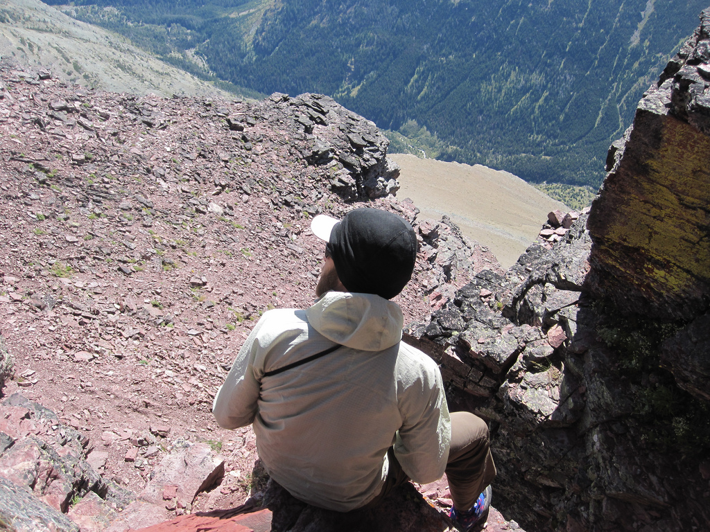 I don’t find waterproof pants necessary. The Featherlights keep wind off, dry super fast, and thus keep my legs warm. For the moment, they’re all the shell pants I want. Pictured below on the Thorofare traverse in May, which tested shell gear hard.