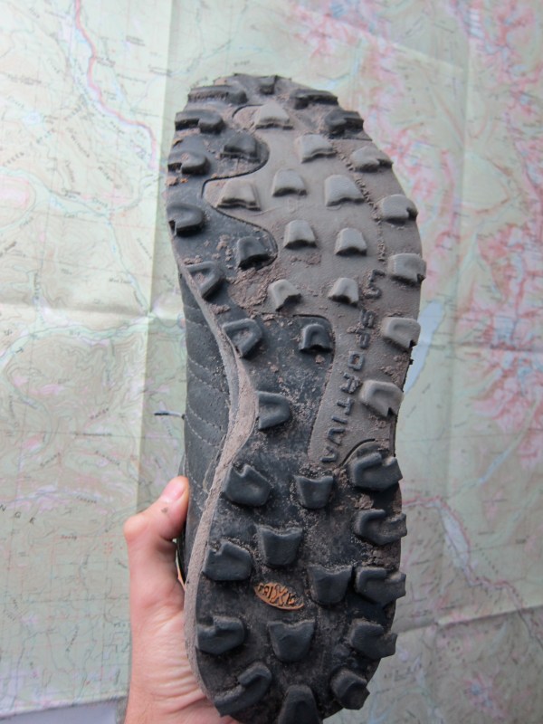 The rubber has worn quite fast, especially the softer gray compound. I don’t see this as a bit deal, as given the current rate of wear the midsole will be shot around the time the tread is gone. Rubber compound is a compromise between hard wearing and traction, and I think LaSportiva hit the balance well here.