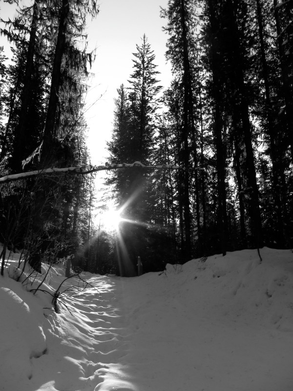 An arctic front has moved into the US over the last 36 hours, and as last night was forecasted to be cold and clear, I headed out to test gear. I left work, threw a pack together, drove up to Polebridge, and skied into Bowman Lake, mostly in the dark.