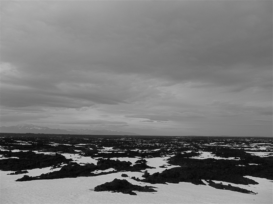If you do go, and you really ought to, try for mid-late spring so you won’t need poles or snowshoes. Bring a wind stable shelter, but no stakes, as they don’t hold in the cinder-dirt at all, and perversely most of the volcanic rocks are super light for their size (we tied guy lines to the center of poles and snowshoes and piled on lots of rocks). Plenty of fuel for snow melting, but as light as load as you can manage to make the going as easy as possible. Light shoes with tacky rubber and strong legs are most vital of all. Second most vital is some sort of wind layer. Third most important, if you plan to seek out some of the various caves and bridges marked on the topo, is a GPS. We’ve uncovered various accounts of magnetic rocks messing with compasses out there, and while I can’t confirm that happened to us, we did spend a lot of time futzing with bearings off buttes which never seemd to quite work out properly. If you’re just out to walk and see that piece of the world, the various cones and buttes provide dead-easy landmarks, unless you get fogged in. I went for a very cool day hike in dense and icy November fog back six years ago, and having that roll in when you were far out on the lava with a wonky compass bearing is alarming.