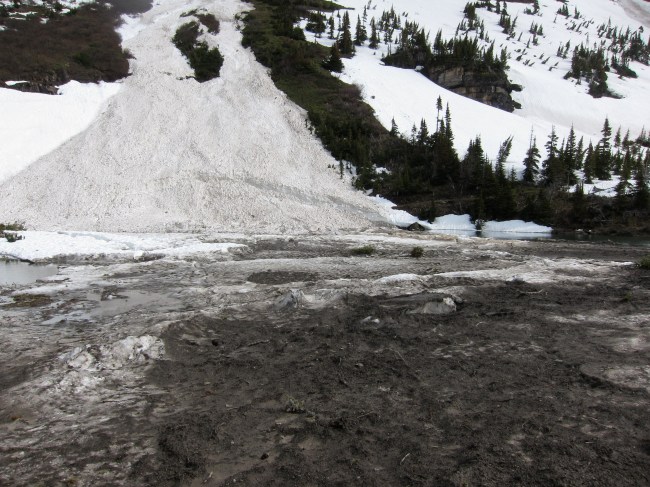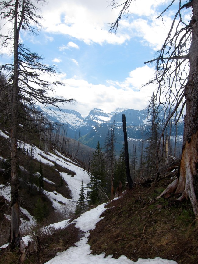 Snow started early going up Flattop Mountain. You can see the still snowed-in Going-to-the-Sun road in the distance.