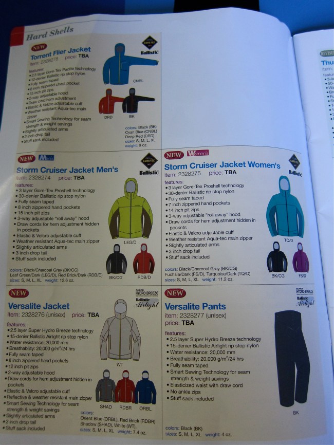 And last but not least, for the patient, page 4 from the 2011-2012 Montbell dealers workbook, featuring some raingear in which ya’ll might be interested.
